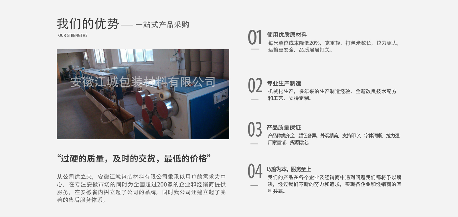 安徽江城包裝材料有限公司成立于2008年,注冊(cè)于2010年,公司總部設(shè)立在安徽蕪湖,是安徽省內(nèi)專業(yè)生產(chǎn)與銷售打包帶、透明膠帶的公司之一。公司主要效勞于大中小企業(yè),并大力開發(fā)省內(nèi)經(jīng)銷商。公司以“過(guò)硬的質(zhì)量,及時(shí)的交貨,低的價(jià)格”,為企業(yè)的立身之本。希望用我們的不懈努力,帶給我們客戶大的效益。從公司建立來(lái),安徽江城包裝材料有限公司秉承以用戶的需求為中心,在專注安徽市場(chǎng)的同時(shí)為全國(guó)超過(guò)200家的企業(yè)和經(jīng)銷商提供服務(wù),“過(guò)硬的質(zhì)量,及時(shí)的交貨,低的價(jià)格”博得了縱多的企業(yè)和經(jīng)銷商的好評(píng),在安徽省內(nèi)逐步樹立起了公司的品牌,同時(shí)我公司還建立起了完善的售后服務(wù)體系。為我們的產(chǎn)品在各個(gè)企業(yè)及經(jīng)銷商中遇到的問(wèn)題予以解決,經(jīng)過(guò)我們不斷的努力和追求,實(shí)現(xiàn)各企業(yè)和經(jīng)銷商的互利共贏。